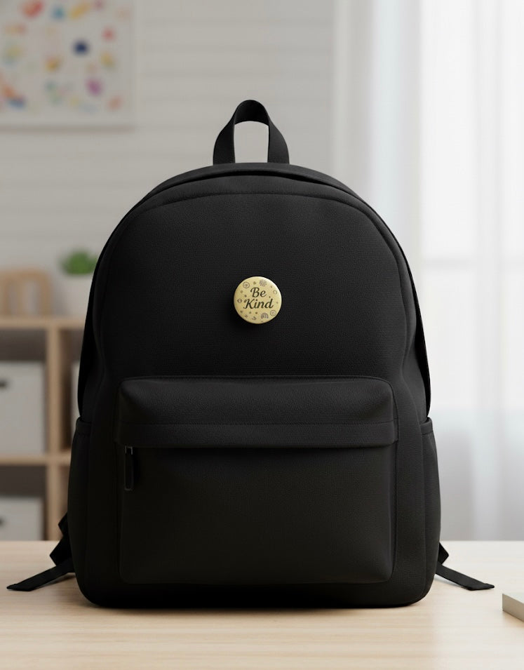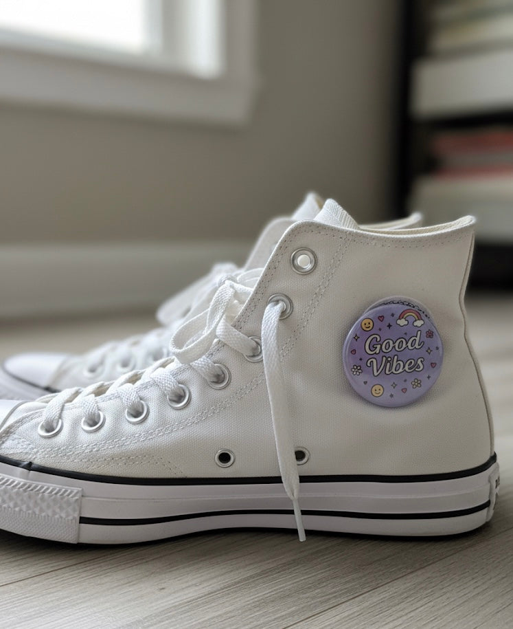 - Custom pin-back buttons printed in bright, vibrant colors.